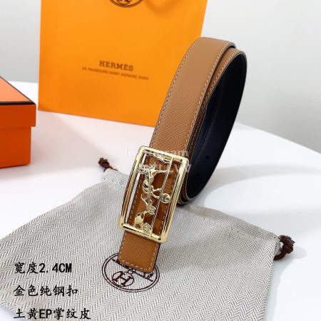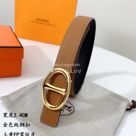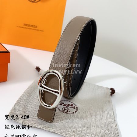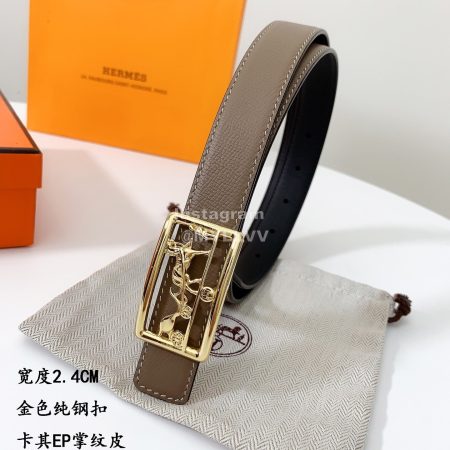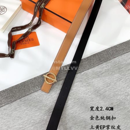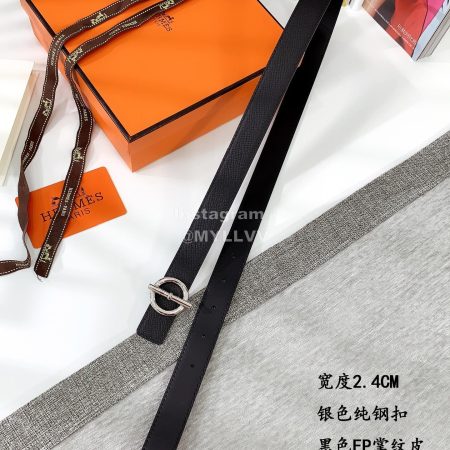 Hermes Soft Palm Calf Leather Pure Steel Buckle 24mm Belt For Women