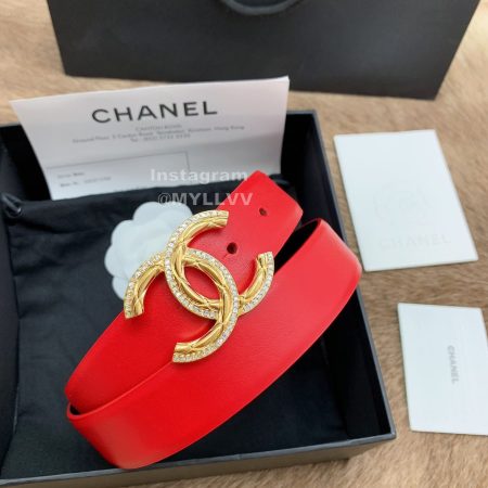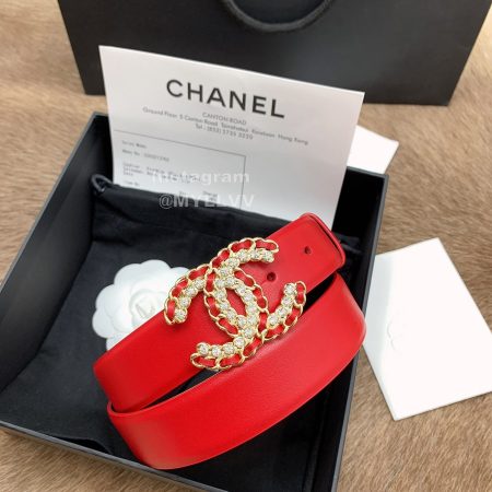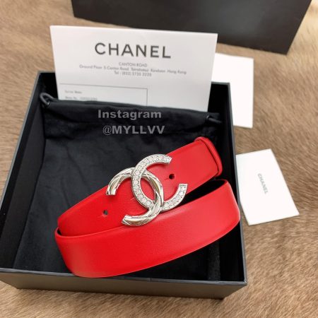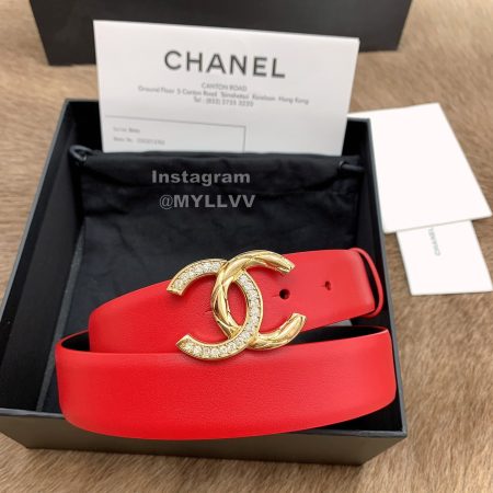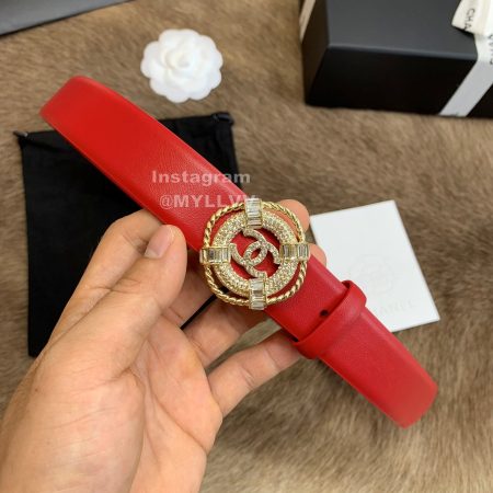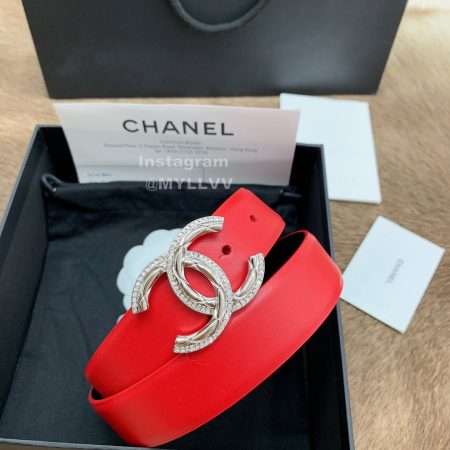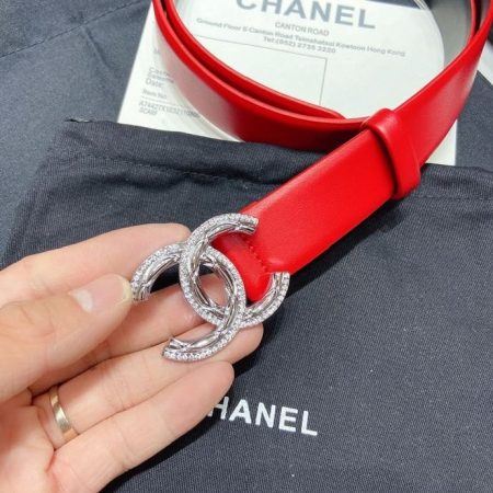 Chanel New Calf Leather Diamond Buckle 30mm Belts For Women Red