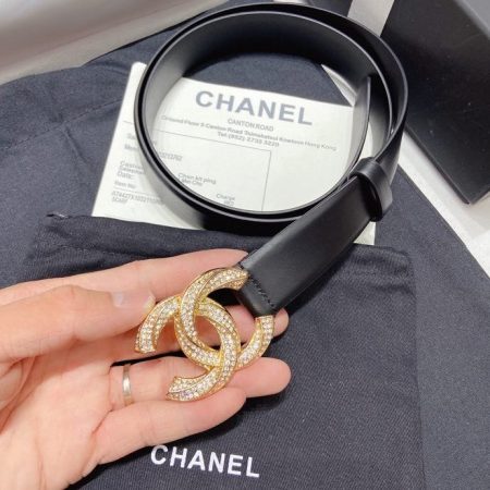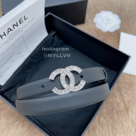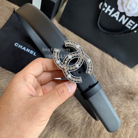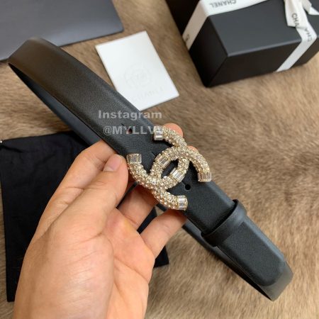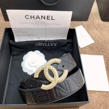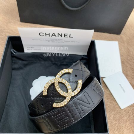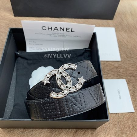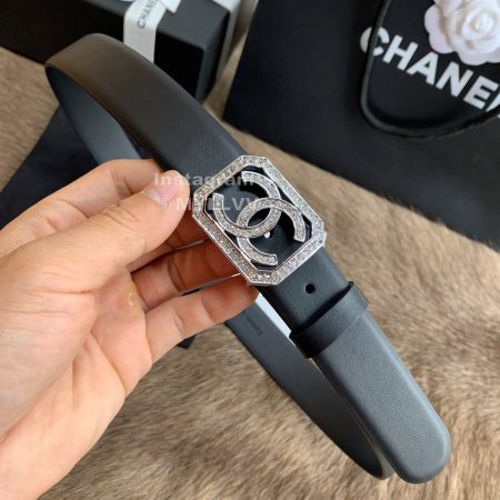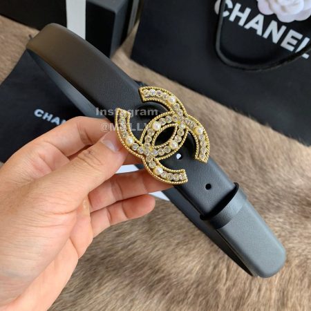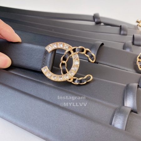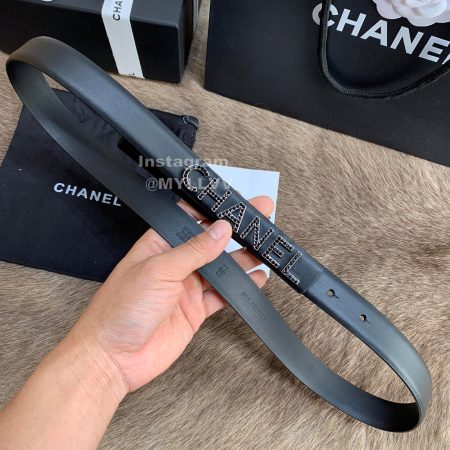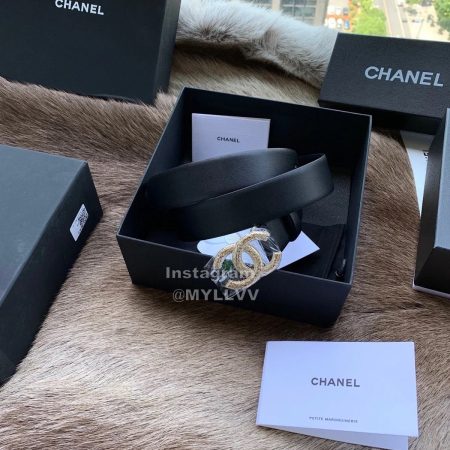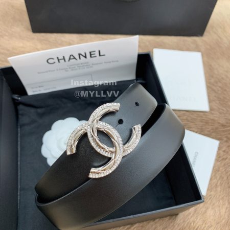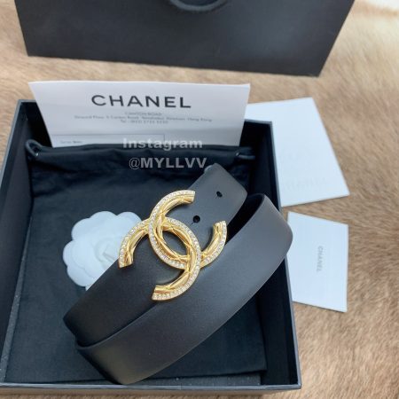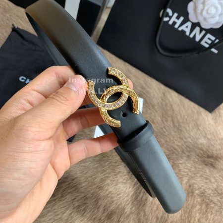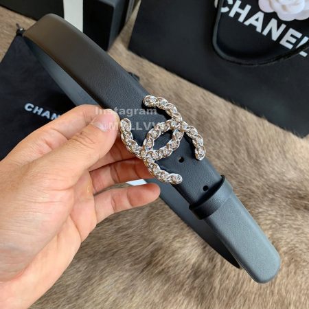 Chanel New Letter Calf Leather Diamond Buckle 30mm Belts For Women Black