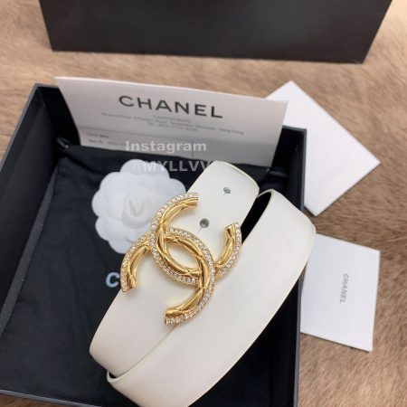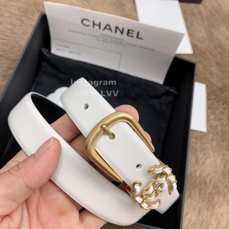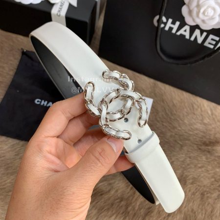 Chanel Fashion Calf Leather White Buckle 30mm Belts For Women
