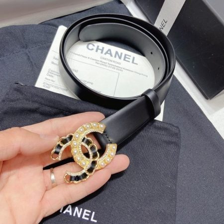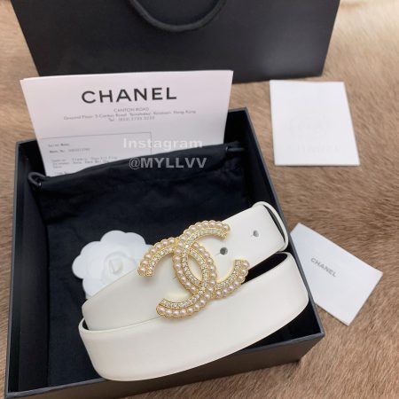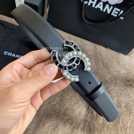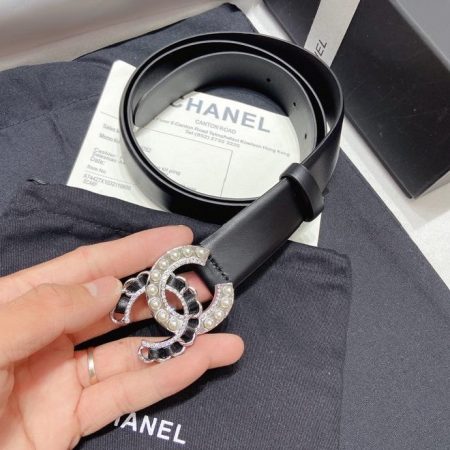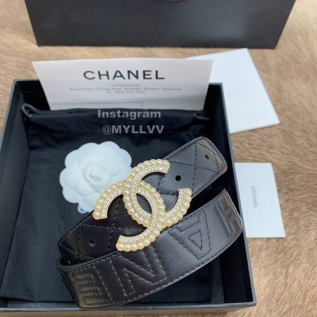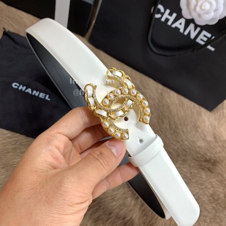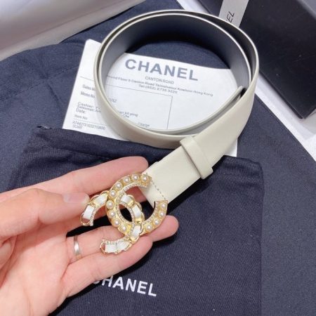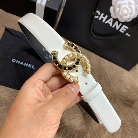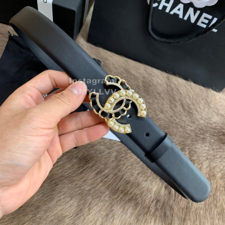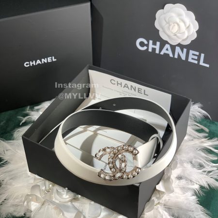 Chanel New Letter Calf Leather Pearl Buckle 30mm Belts For Women