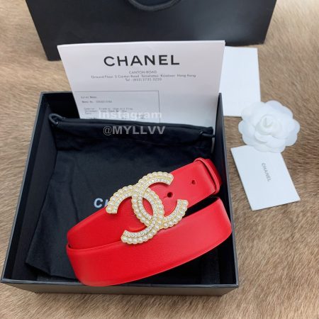 Chanel New Red Calf Leather Pearl Buckle 30mm Belts For Women