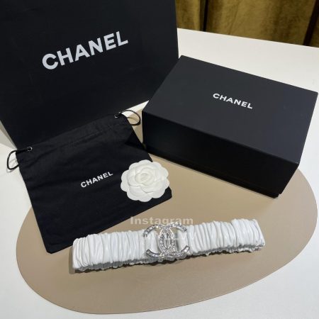 Chanel New Calf Leather Gun Color Buckle 30mm Belts For Women White