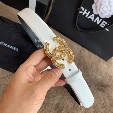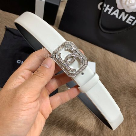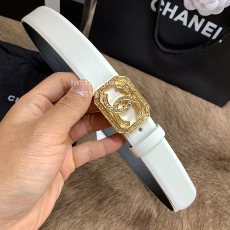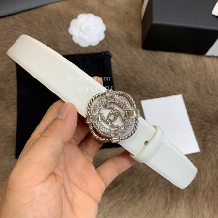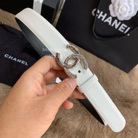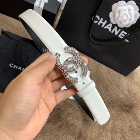 Chanel New Calf Leather Diamond Buckle 30mm Belts For Women White
