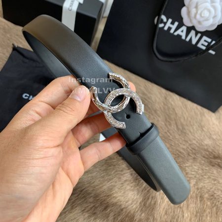 Chanel Fashion Calf Leather Silver Diamond Buckle 20mm Belts For Women Black