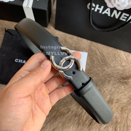 Chanel Fashion Silver Buckle Calf Leather 30mm Belts For Women Black