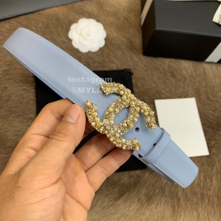 Chanel New Calf Leather Diamond Buckle 30mm Belts For Women Blue