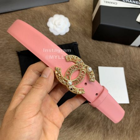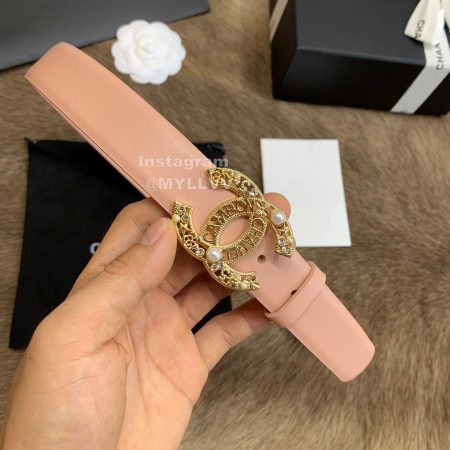 Chanel New Calf Leather Pearl Buckle 30mm Belts For Women Pink