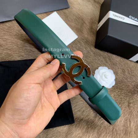 Chanel New Calf Leather Gun Color Buckle 30mm Belts For Women Green