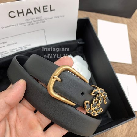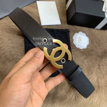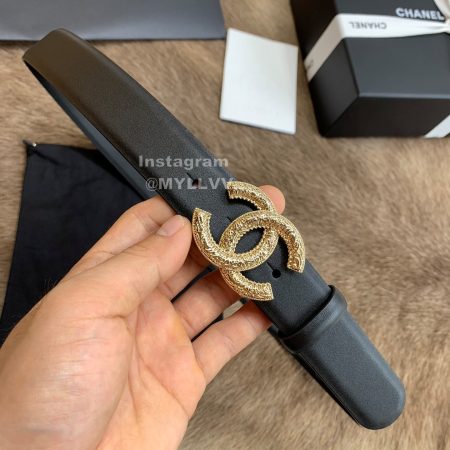 Chanel Letter Calf Leather Gold Buckle 30mm Belts For Women