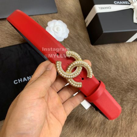 Chanel Fashion Red Calf Leather Pearl Buckle 30mm Belts For Women