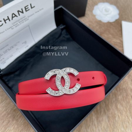 Chanel Fashion Calf Leather Silver Diamond Buckle 20mm Belts For Women Red