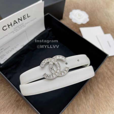 Chanel Fashion Calf Leather Silver Diamond Buckle 20mm Belts For Women White