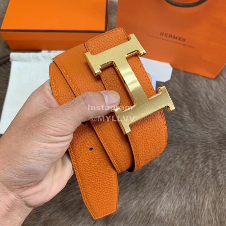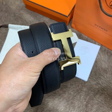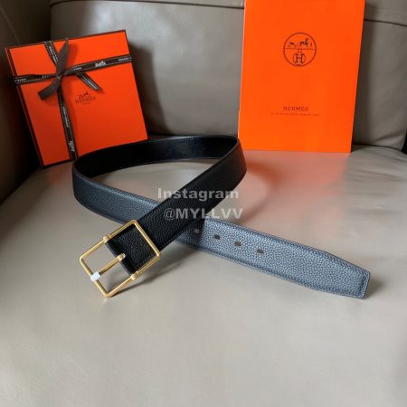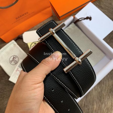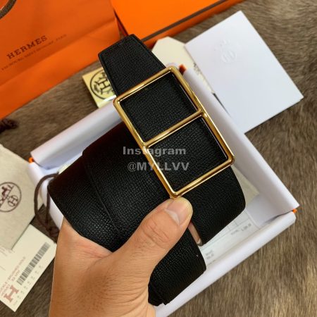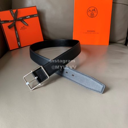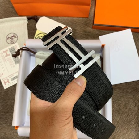 Hermes Palm Grain Cowhide Pure Steel Buckle 38mm Belt For Men Black