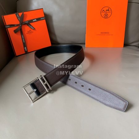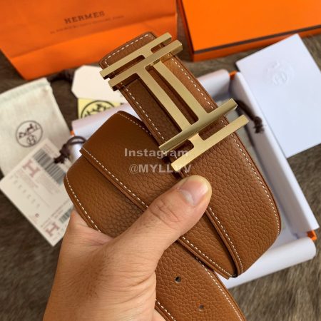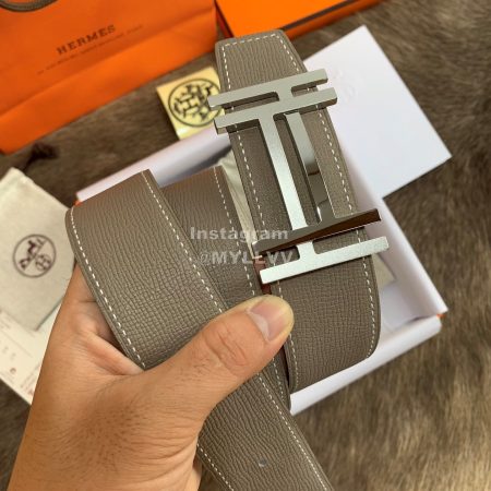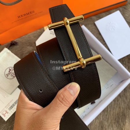 Hermes Palm Grain Cowhide Pure Steel Buckle 38mm Belt For Men Brown