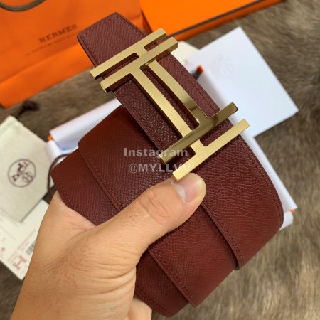 Hermes Palm Grain Cowhide Pure Steel Buckle 38mm Belt For Men Wine Red