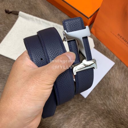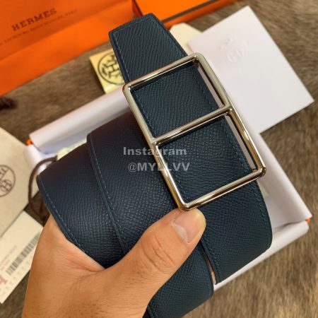 Hermes Palm Grain Cowhide Pure Steel Buckle 38mm Belt For Men Navy