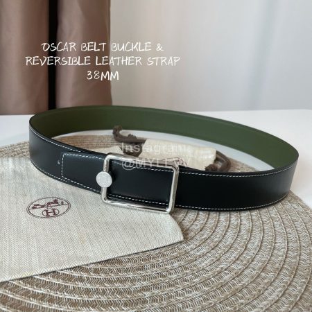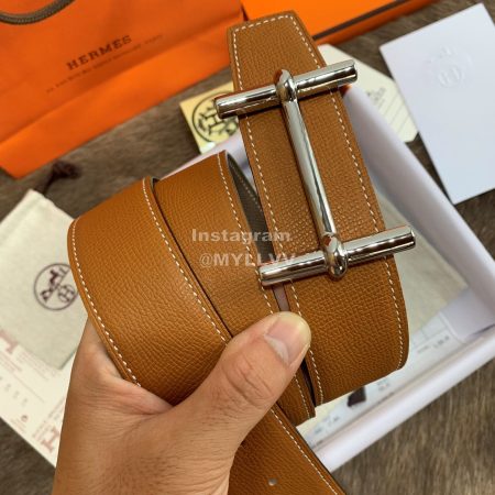 Hermes Oscar Belt Silver Buckle Reversible Leather Strap 38mm Tan