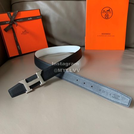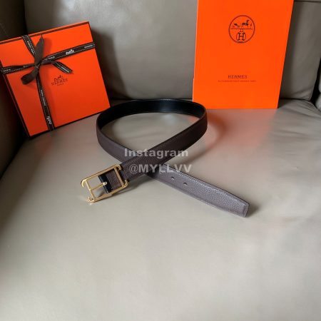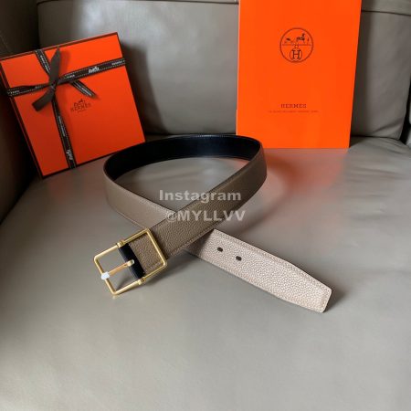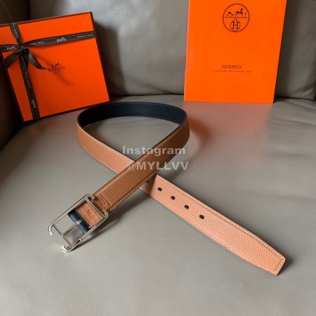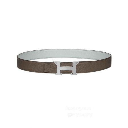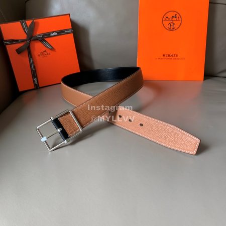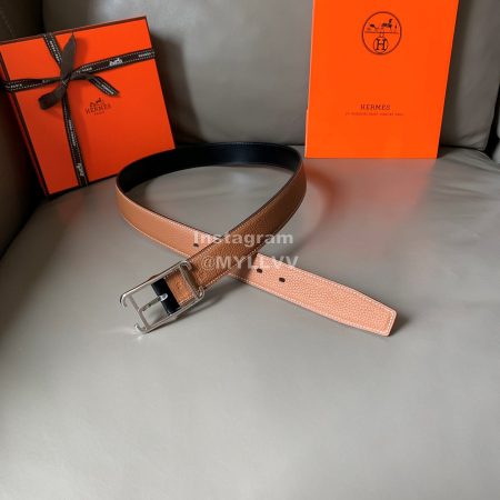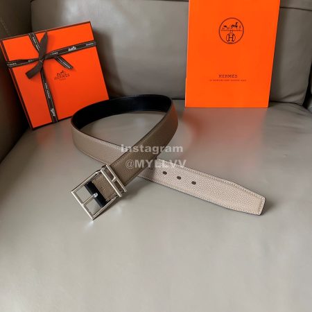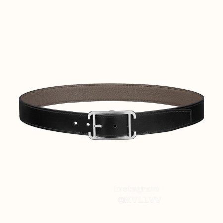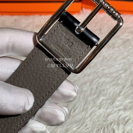 Hermes Society Calf Leather Silver Pin Buckle 32mm Belt