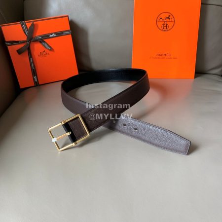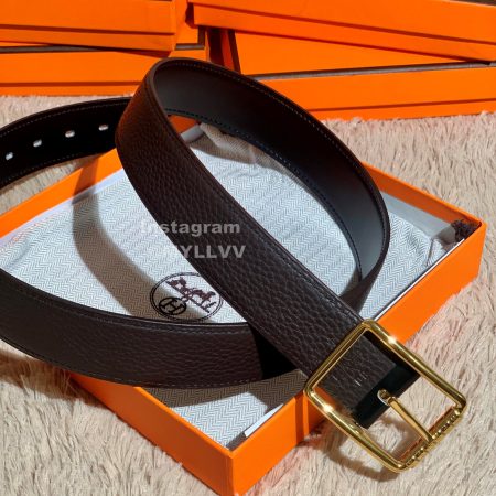 Hermes Palm Grain Cowhide Pure Steel Buckle 38mm Belt For Men Coffee