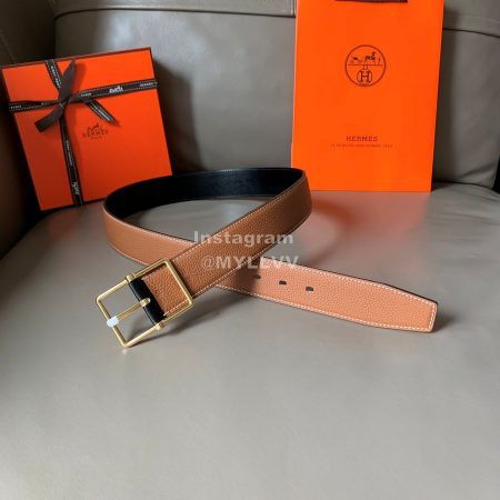 Hermes Saddle Calf Leather Palladium Plated Gold Pin Buckle 38mm Belt