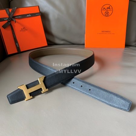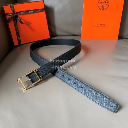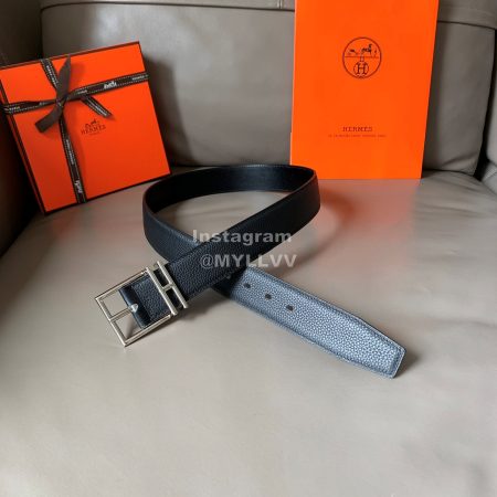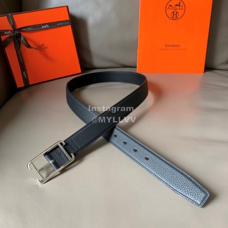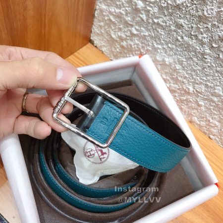 Hermes Palm Grain Cowhide Pure Steel Buckle 38mm Belt For Men Blue