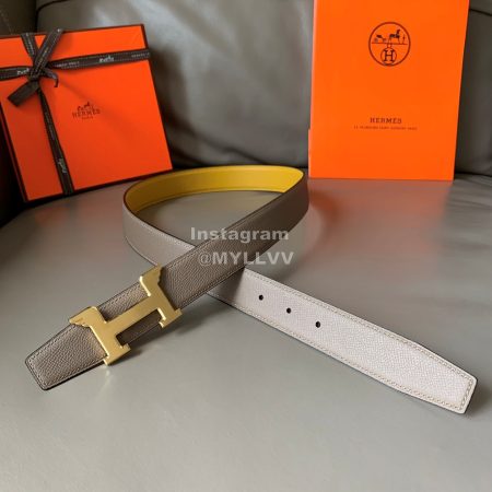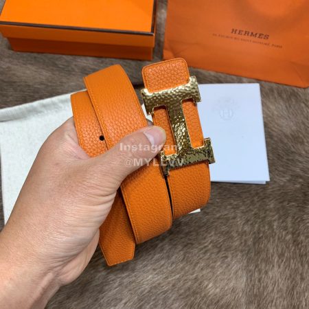 Hermes Pegase Calf Leather Frosted Gold-Plated Metal Buckle 32mm Belt Yellow