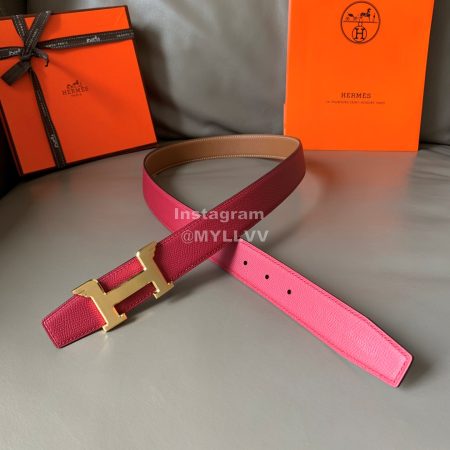 Hermes Pegase Calf Leather Frosted Gold-Plated Metal Buckle 32mm Belt Rose Red