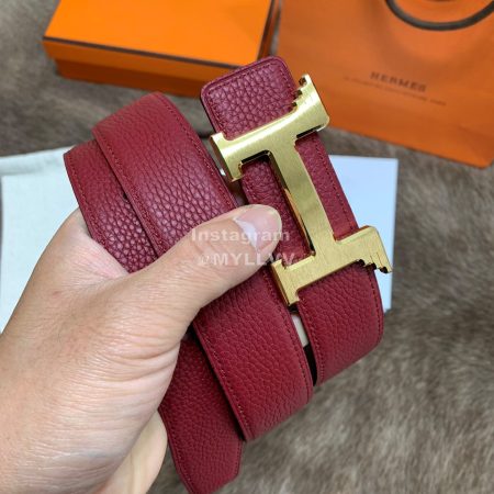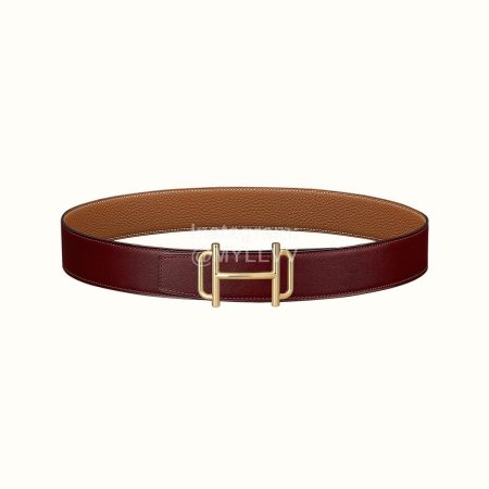 Hermes Royal Belt Gold Buckle Reversible Leather Strap 38mm Wine Red