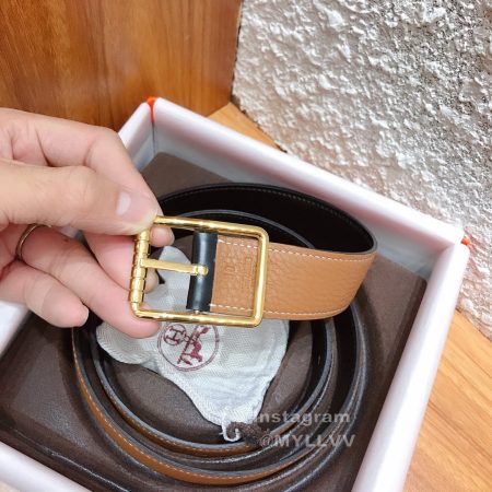 Hermes Society Calf Leather Gold Pin Buckle 32mm Belt