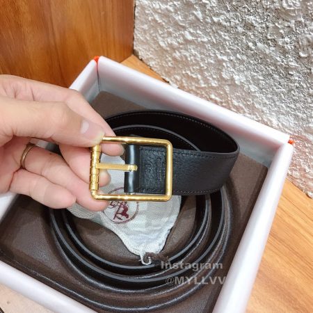 Hermes Saddle Calf Leather Palladium Plated Gold Pin Buckle 38mm Belt Black