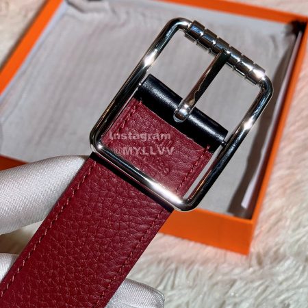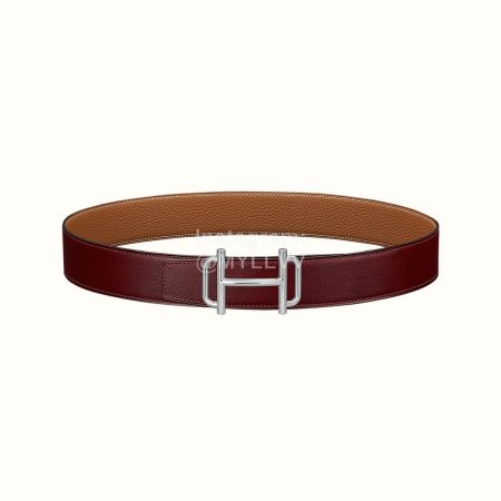 Hermes Royal Belt Silver Buckle Reversible Leather Strap 38mm Wine Red