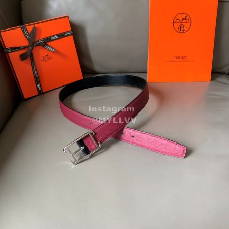 Hermes Society Calf Leather Silver Pin Buckle 32mm Belt Rose Red