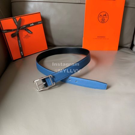 Hermes Society Calf Leather Silver Pin Buckle 32mm Belt Blue