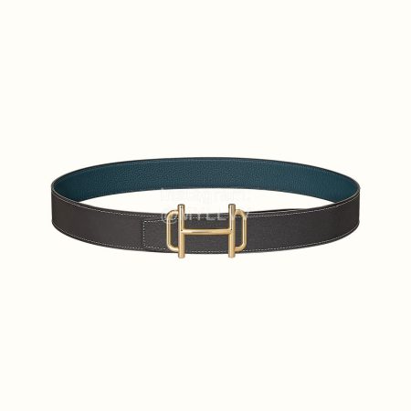 Hermes Royal Belt Gold Buckle Reversible Leather Strap 38mm Blue