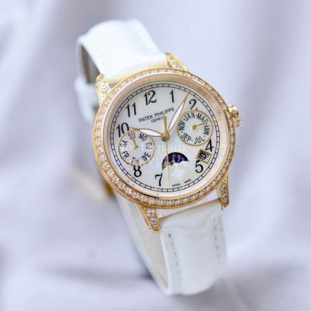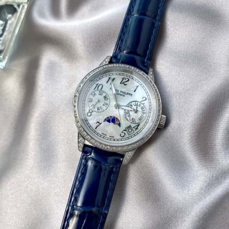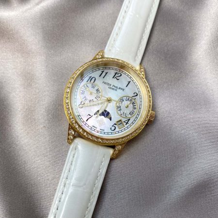 Patek Philippe Leather Strap Diamond Multifunctional Watch White