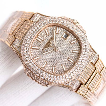 Patek Philippe Nautilus Diamond Dial Watch Rose Gold