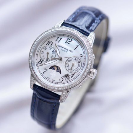 Patek Philippe Leather Strap Diamond Multifunctional Watch Navy