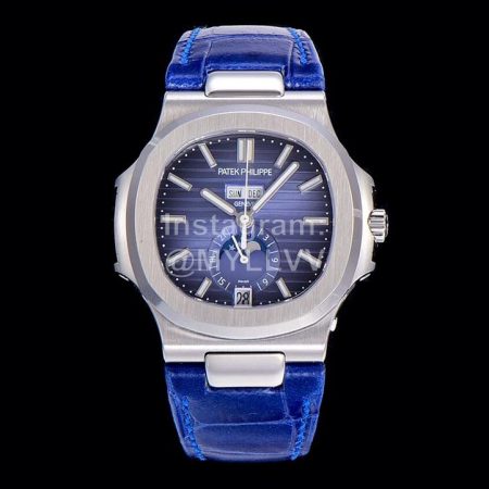 Patek Philippe Nautilus Leather Strap Multifunctional Watch Blue