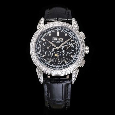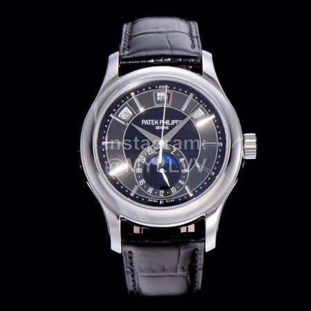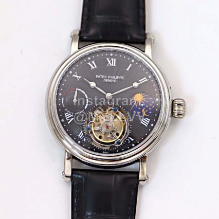 Patek Philippe Gr Factory Black Leather Strap Multifunctional Watch