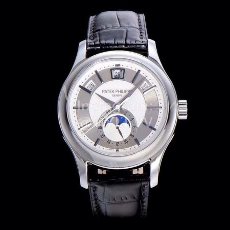 Patek Philippe Leather Strap Gray Dial Multifunctional Watch