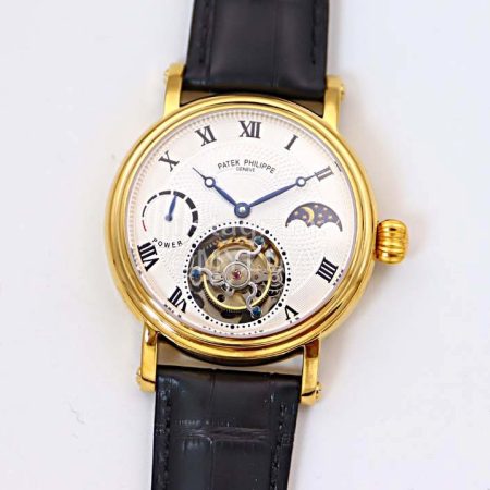 Patek Philippe Leather Strap Mechanical Watch For Men Gold
