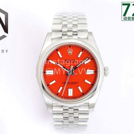 Rolex 41mm Orange Dial Steel Strap Luminous Watch