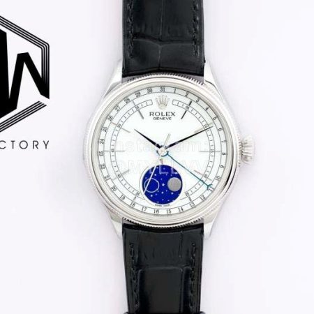 Rolex 41mm White Dial Leather Strap Watch For Men
