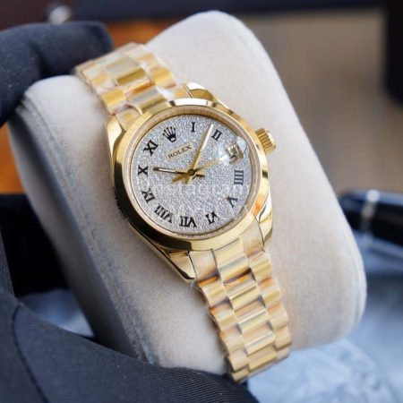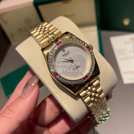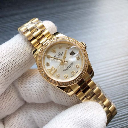 Rolex 316l Stainless Steel 28mm Dial Watch For Women Gold