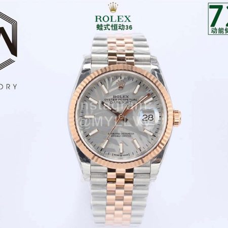 Rolex New 36mm Dial Steel Strap Diamond Watch Rose Gold