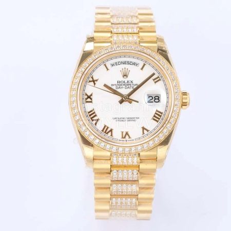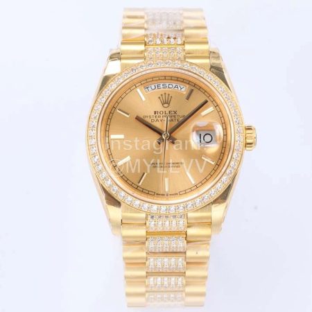 Rolex New 904l Steel Diamond Dial Watch Gold