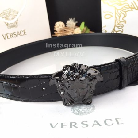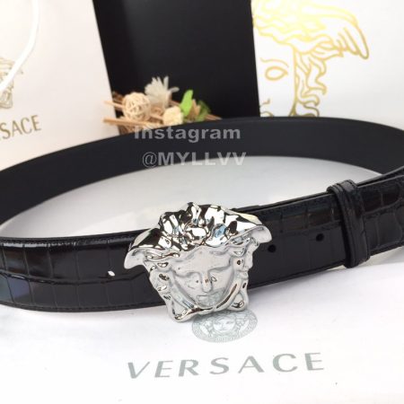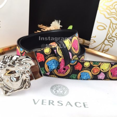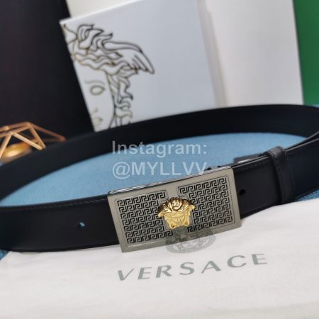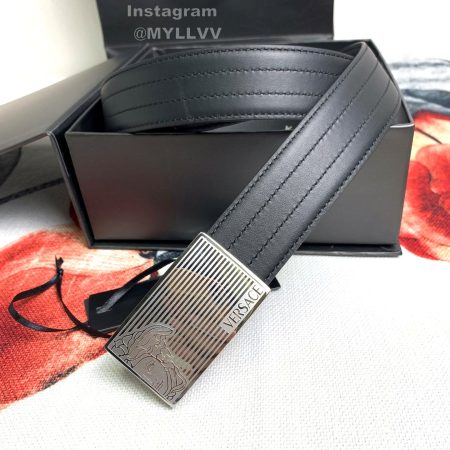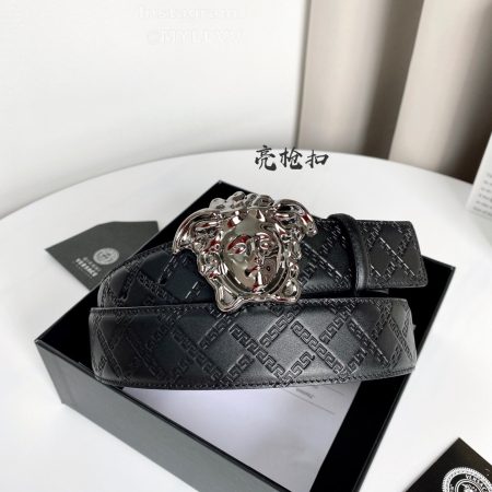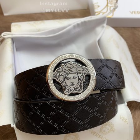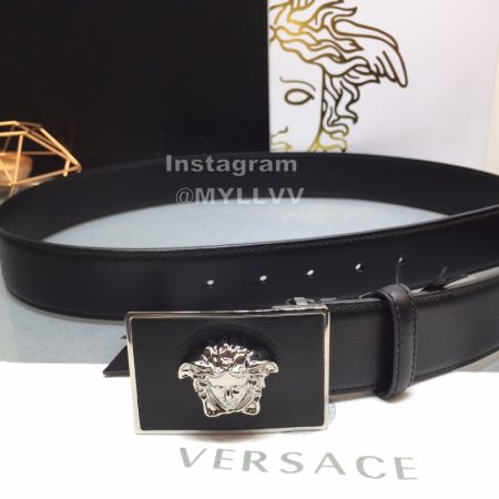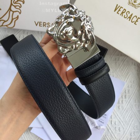 Versace Fashion Calf Leather Medusa Square Silver Buckle 40mm Belt