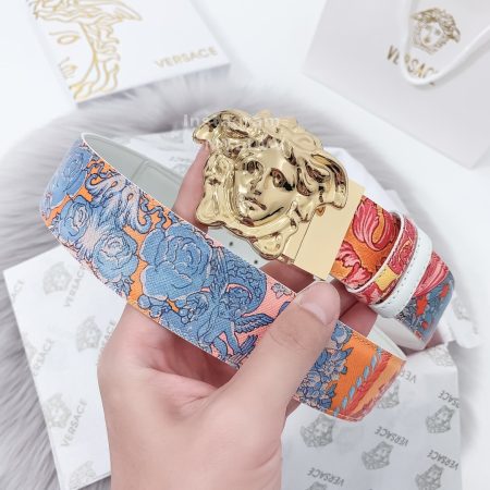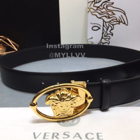 Versace Fashion Leather Gold Medusa Buckle Belt