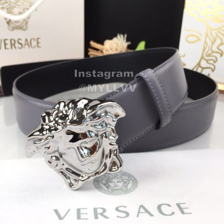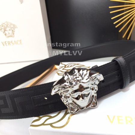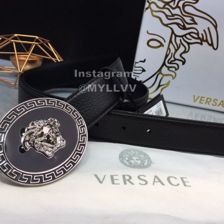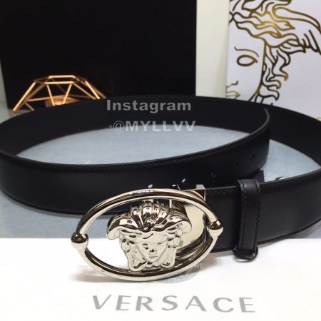 Versace Fashion Calf Leather Silver Medusa Ellipse Buckle 40mm Belt